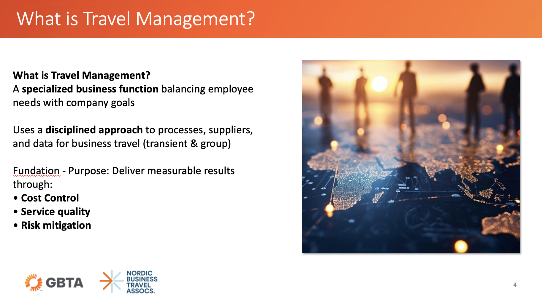 The Fundamentals of Business Travel Management™ is the GBTA Academy’s introductory course, tailored for the Nordic market and delivered by the Nordic Business Travel Associations.